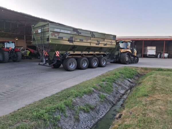 NAJMOĆNIJA SAMOPRETOVARNA TRAKTORSKA PRIKOLICA ZA TRANSPORT ŽITARICA PROIZVOĐAČA “ZAVOD KOBZARENKO” TIP PBN-50 m3, NOSIVOSTI OKO 40 T, KOJA JE U PONUDI DANAS NA TRŽIŠTU U SRBIJI.